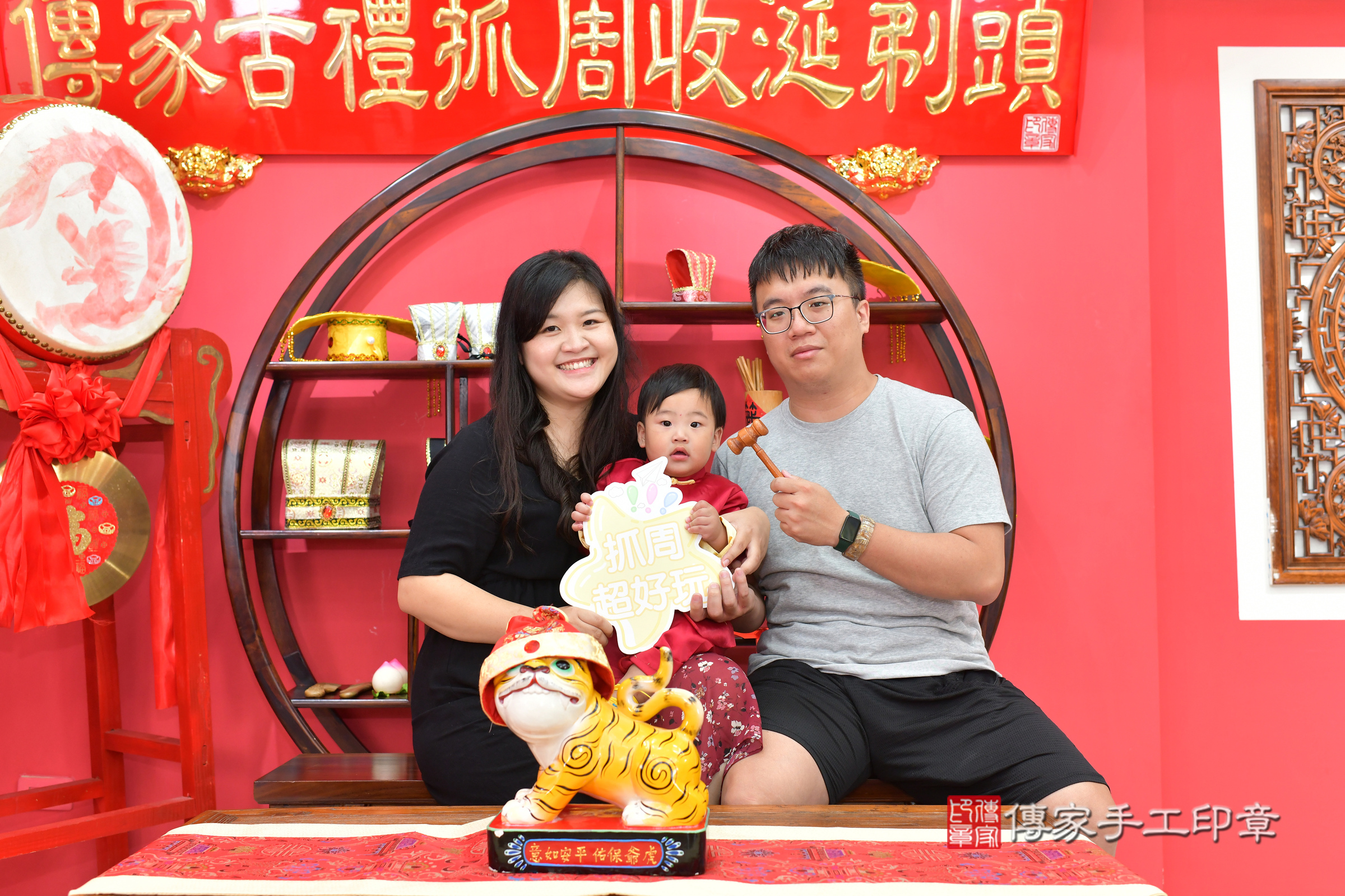 幸福的一家人在這個好日子完成了這場傳統的抓周儀式,