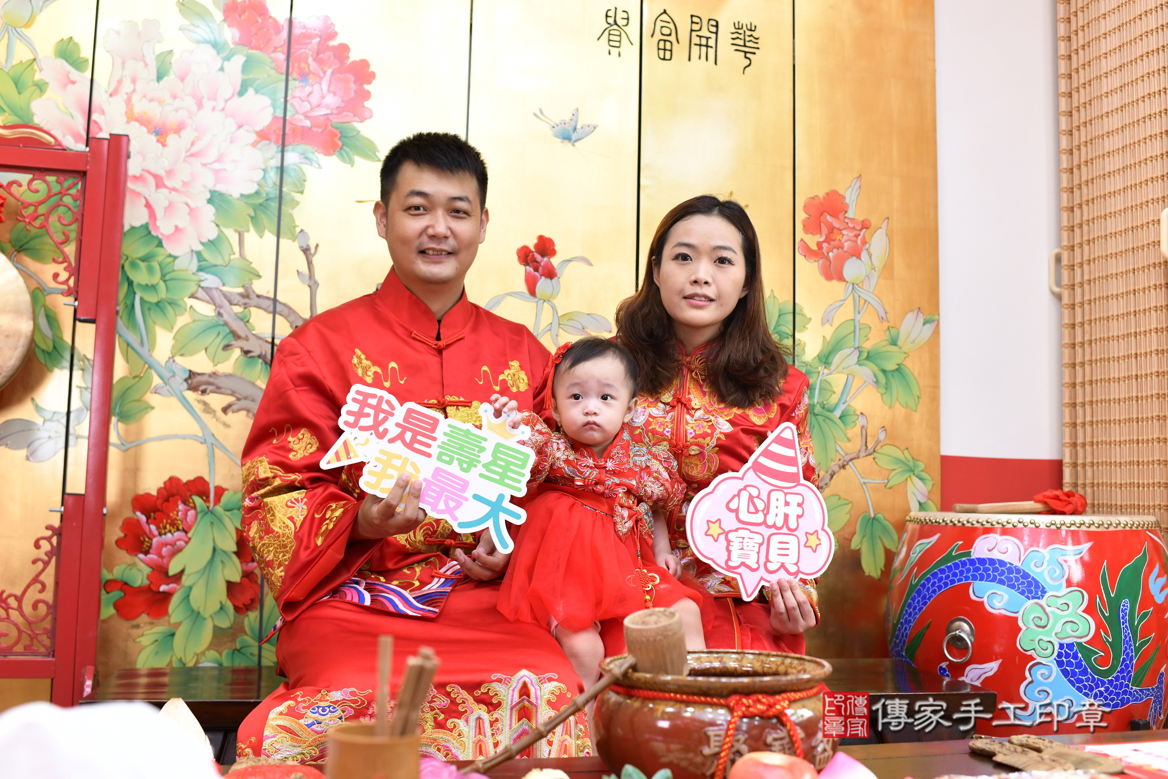 今天和爸爸、媽媽一起來傳家古禮抓周會場的是可愛的小睎寶寶,