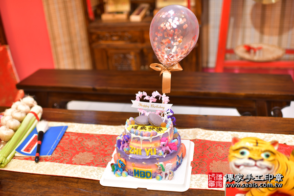 抓周儀式鳳山區劉寶寶【踏一升餅】:讓寶寶腳踏實地,步步高昇。