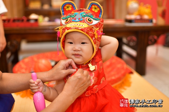 高雄市鳳山區劉寶寶古禮抓周【穿抓周虎衣、帶抓周虎帽、穿抓周虎鞋】:滿週歲趨吉避凶的吉祥衣服穿戴。高雄店抓周。
