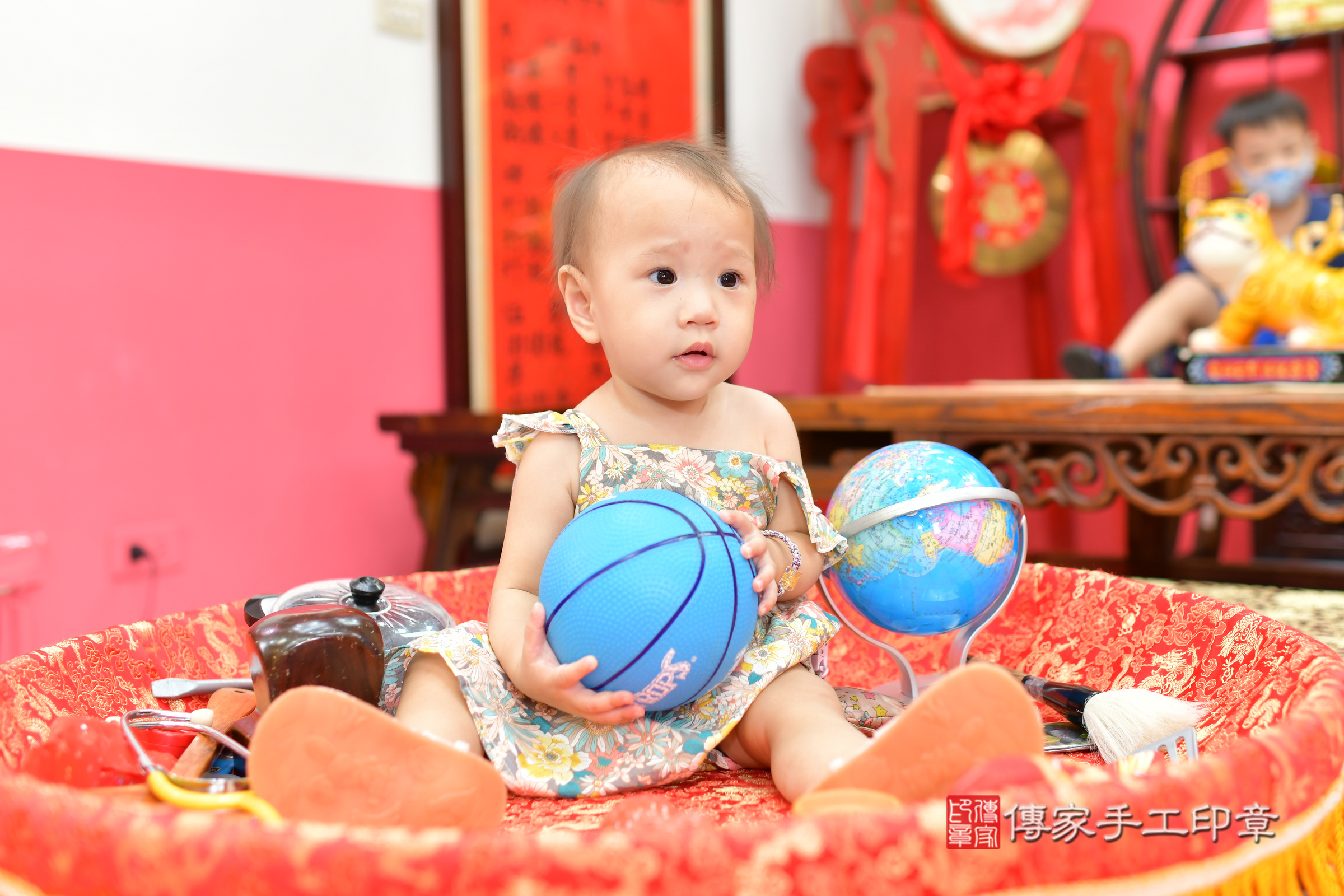 台中市北區小如寶寶抓周推薦:傳家台中店抓周度脺中國風會場,嬰兒古禮抓周流程儀式吉祥話、抓周道具物品24種、拍照。抓周證書。2024.8.16