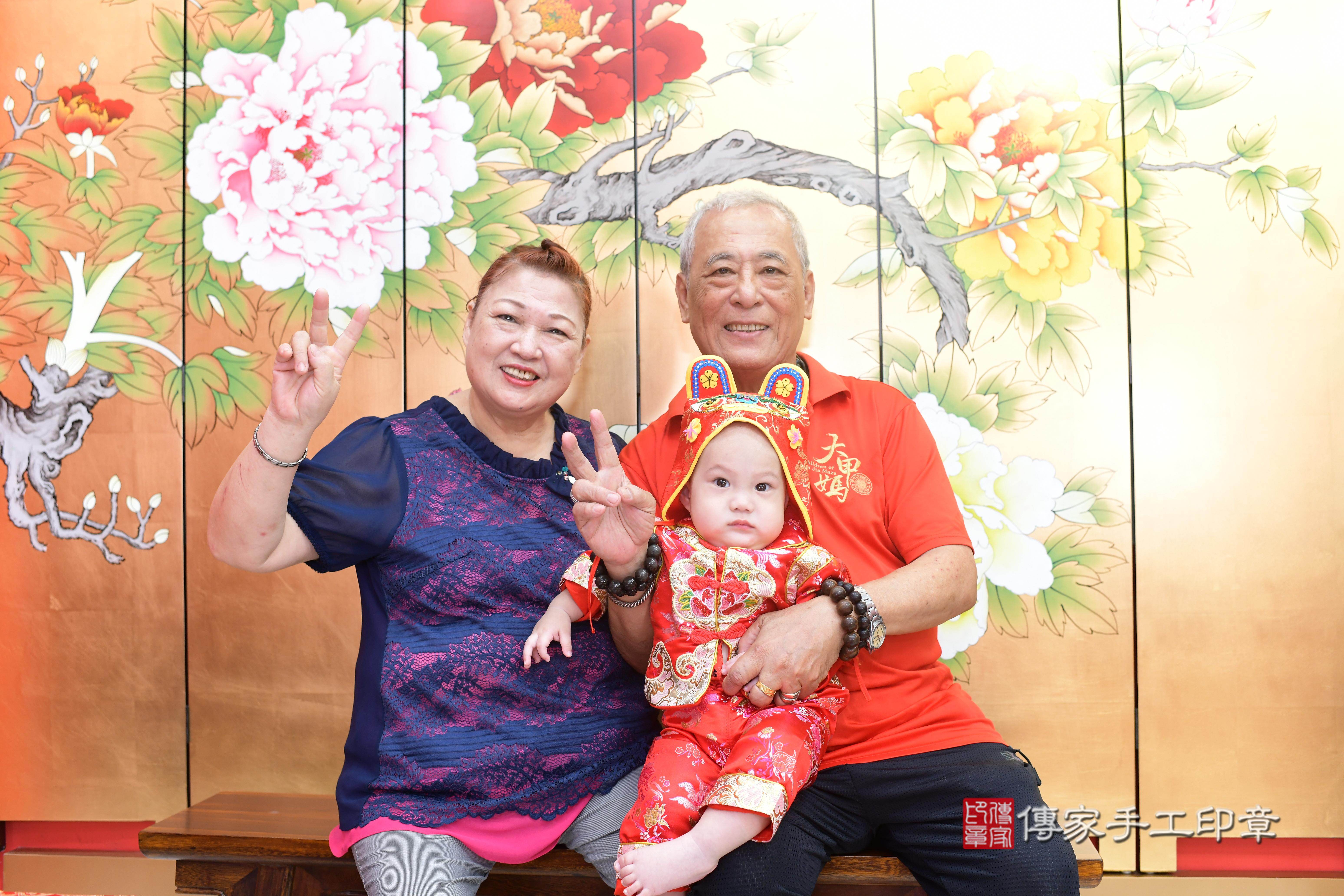 高雄店抓周。爸爸媽媽和虎爺一起拍個合照,保佑孩子平安健康長大喔^^