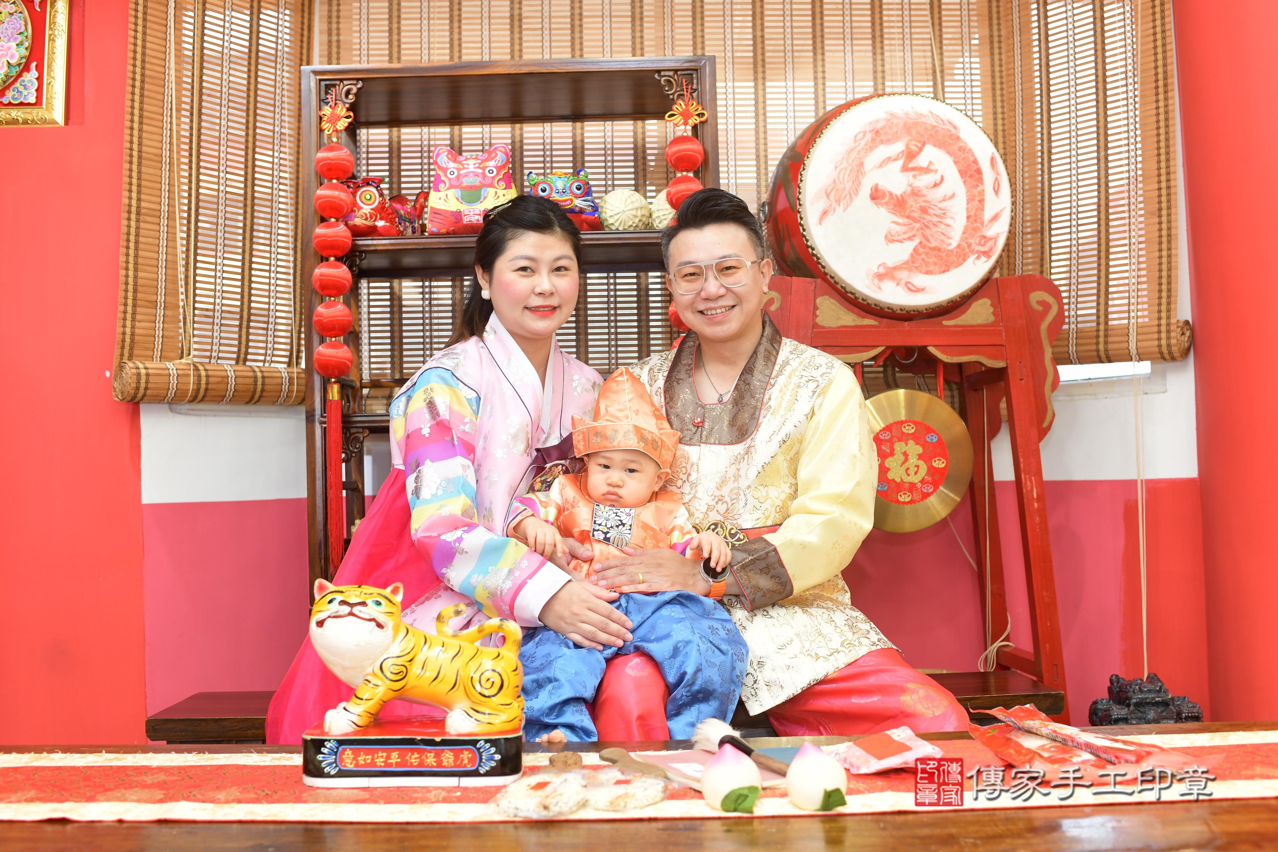 高雄店抓周。爸爸媽媽和虎爺一起拍個合照,保佑孩子平安健康長大喔^^
