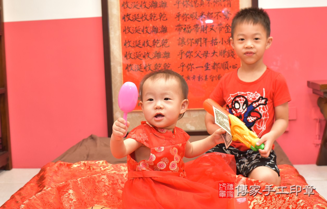 台中市北區蔡寶寶抓周推薦:傳家台中店抓周度脺中國風會場,專業嬰兒古禮抓周流程儀式吉祥話、抓周道具物品24種、攝影拍照。爸媽寶貝三人穿古裝禮服「日式、中式、韓式。款式200套」抓周證書,DVD光碟。2020.06.15