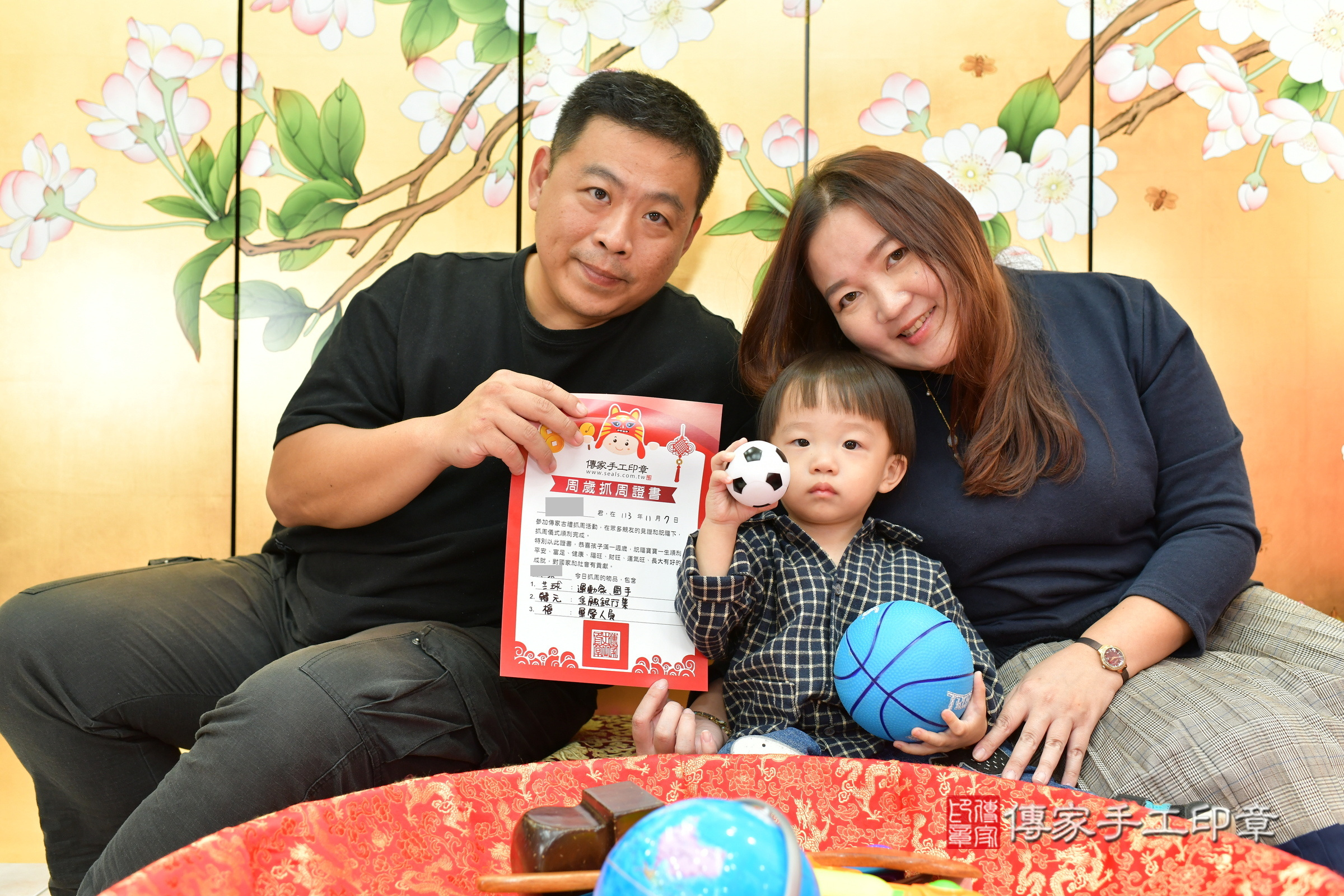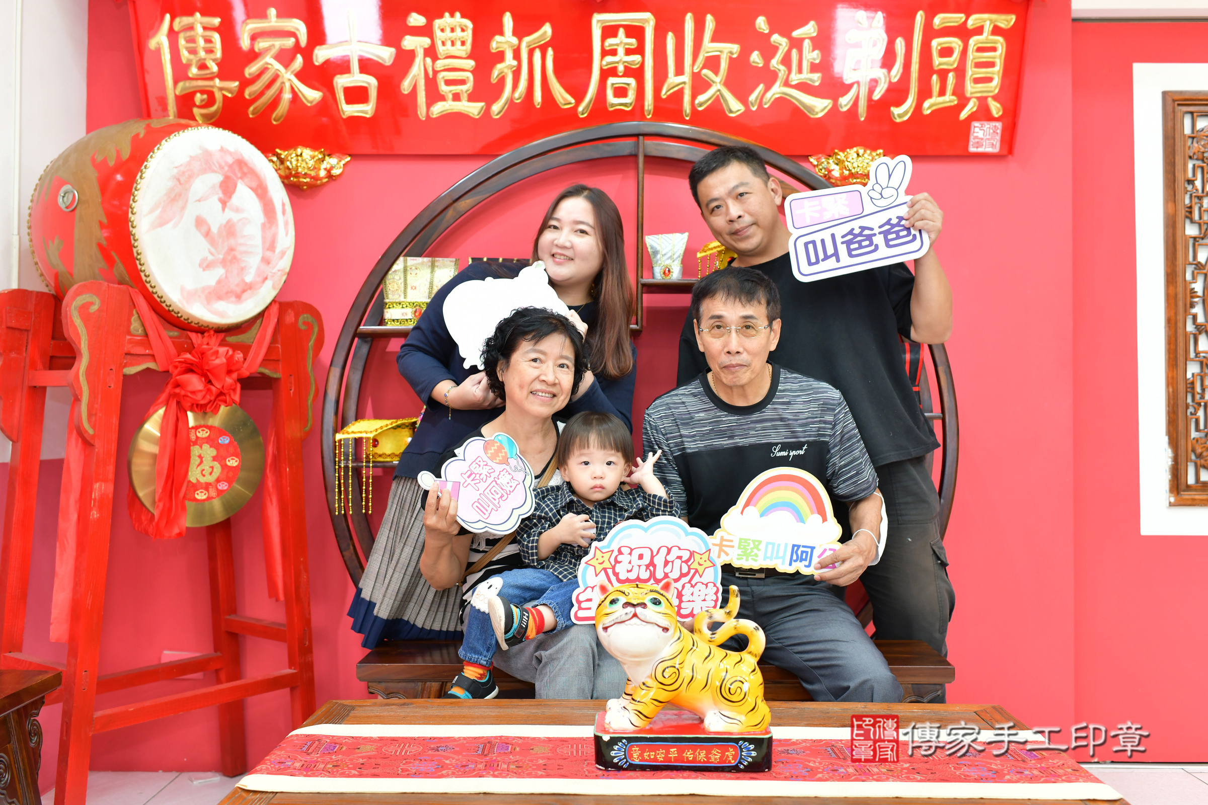 台中市北區小秦寶寶抓周推薦:傳家台中店抓周度脺中國風會場,嬰兒古禮抓周流程儀式吉祥話、抓周道具物品24種、拍照。抓周證書。2024.11.7