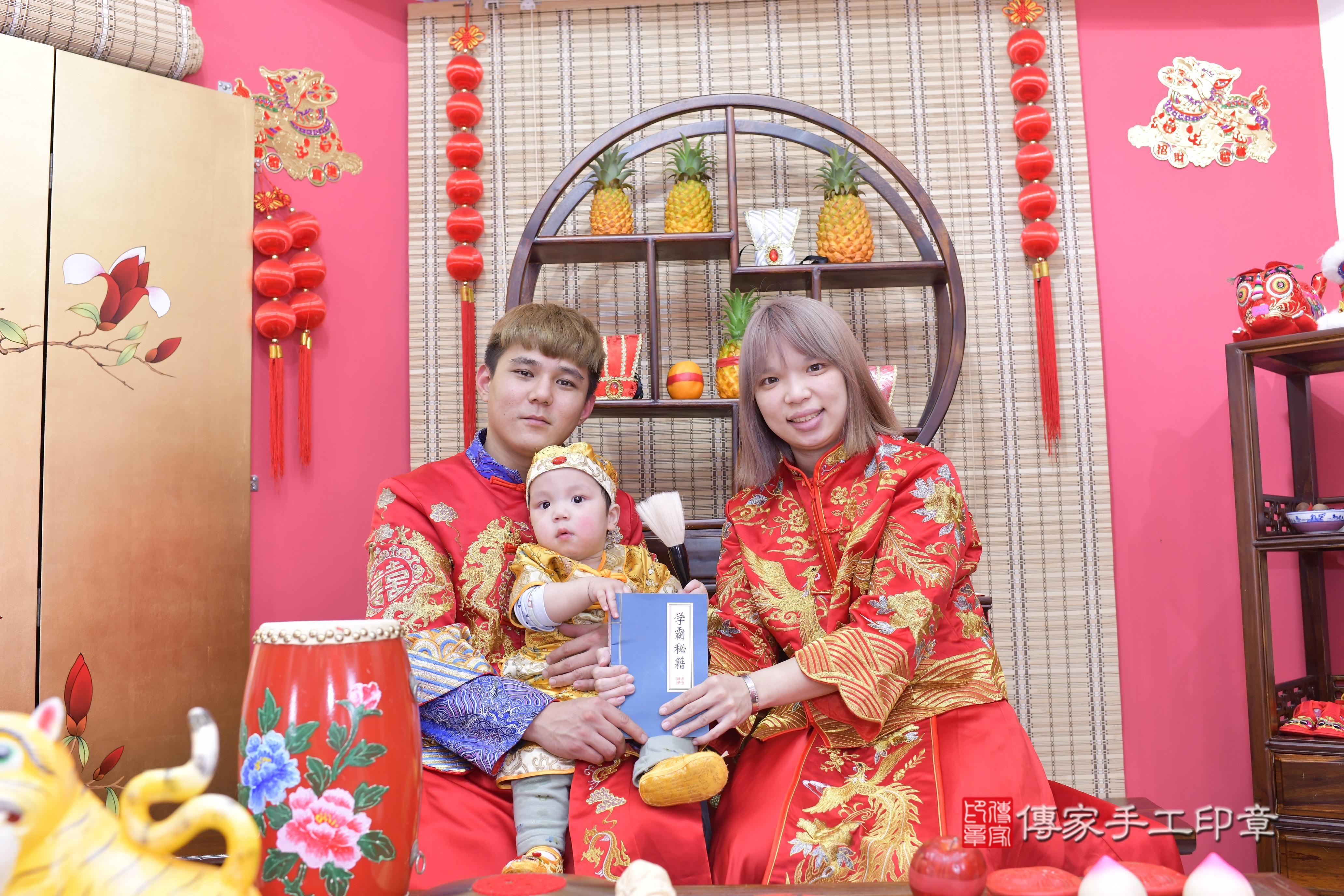 一、翰翰寶貝的週歲抓周儀式開始前,先來幾張爸爸媽媽與寶寶的古禮服裝照