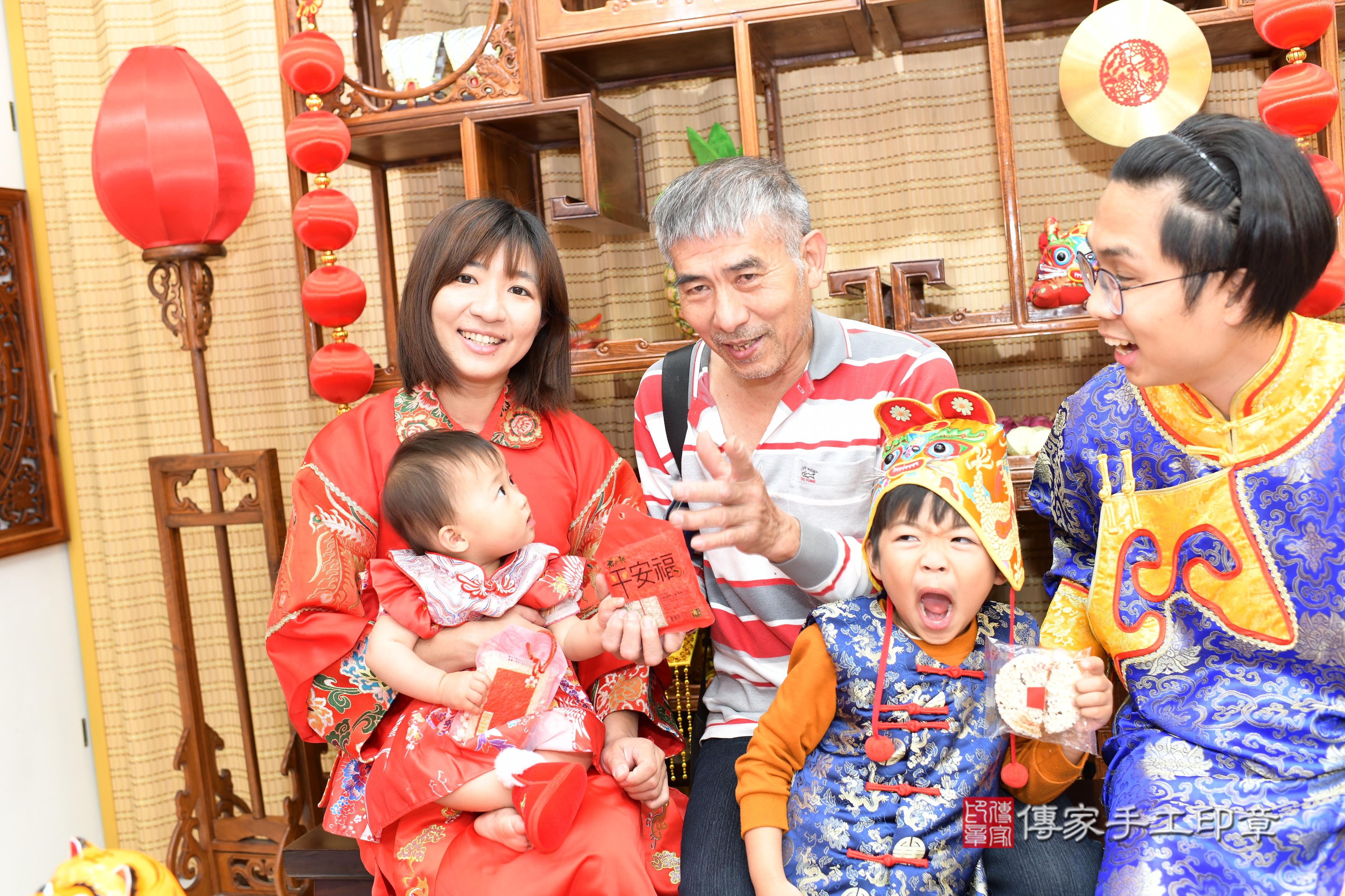 台南店抓周。爸爸媽媽和虎爺一起拍個合照,保佑孩子平安健康長大喔^^