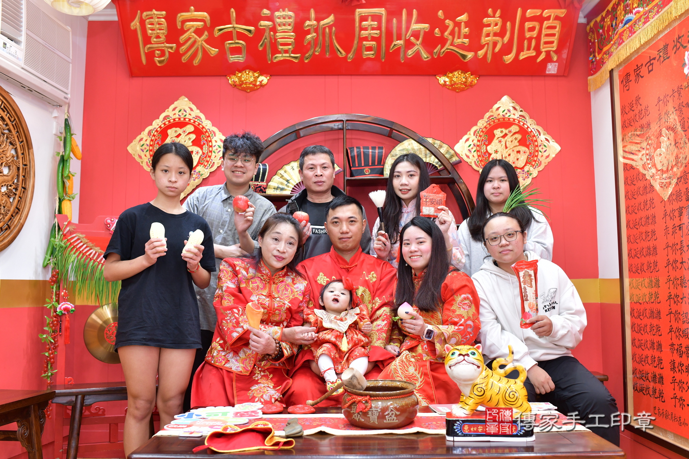 桃園市八德區莛莛寶寶抓周推薦:傳家桃園店抓周度脺中國風會場,嬰兒古禮抓周流程儀式吉祥話、抓周道具物品24種、拍照。抓周證書。2025.3.22