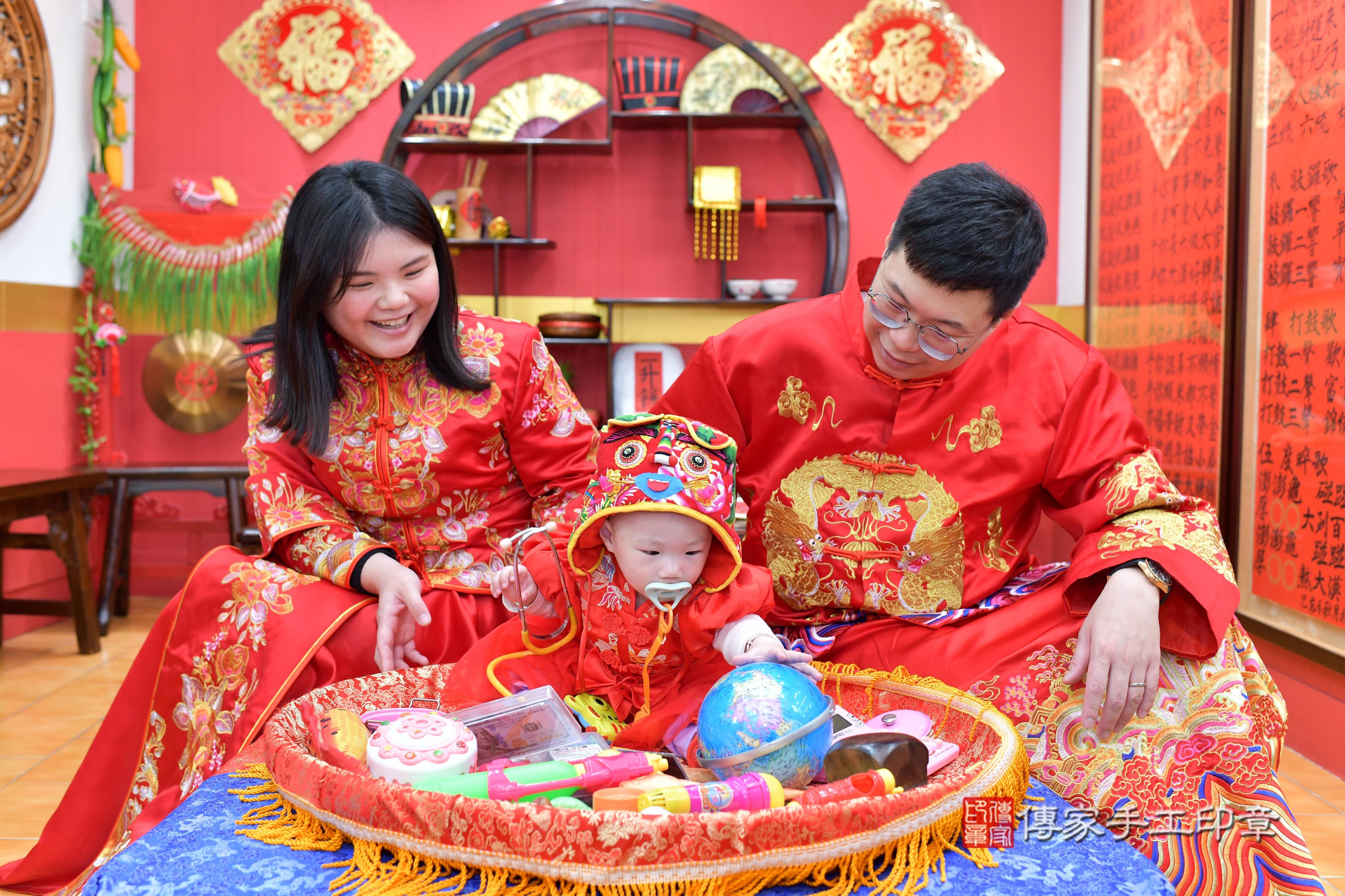 笑聲與祝福交織:抓週儀式的美好記憶!桃園市八德區妍妍寶貝抓周推薦:傳家桃園店抓周度脺中國風會場,嬰兒古禮抓周流程儀式吉祥話、抓周道具物品24種、拍照。抓周證書。2025.03.23