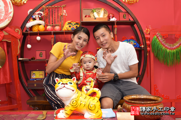 台中市北區謝寶寶抓周推薦:傳家台中店抓周度脺中國風會場,專業嬰兒古禮抓周流程儀式吉祥話、抓周道具物品24種、攝影拍照。爸媽寶貝三人免費穿古裝禮服「日式、中式、韓式。款式200套」抓周證書,DVD光碟。2019.08.02