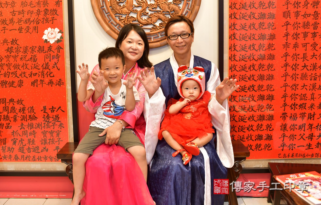 高雄市鳳山區孫寶寶抓周推薦:傳家高雄店抓周度脺中國風會場,專業嬰兒古禮抓周流程儀式吉祥話、抓周道具物品24種、攝影拍照。爸媽寶貝三人穿古裝禮服「日式、中式、韓式。款式200套」抓周證書,DVD光碟。2020.10.02