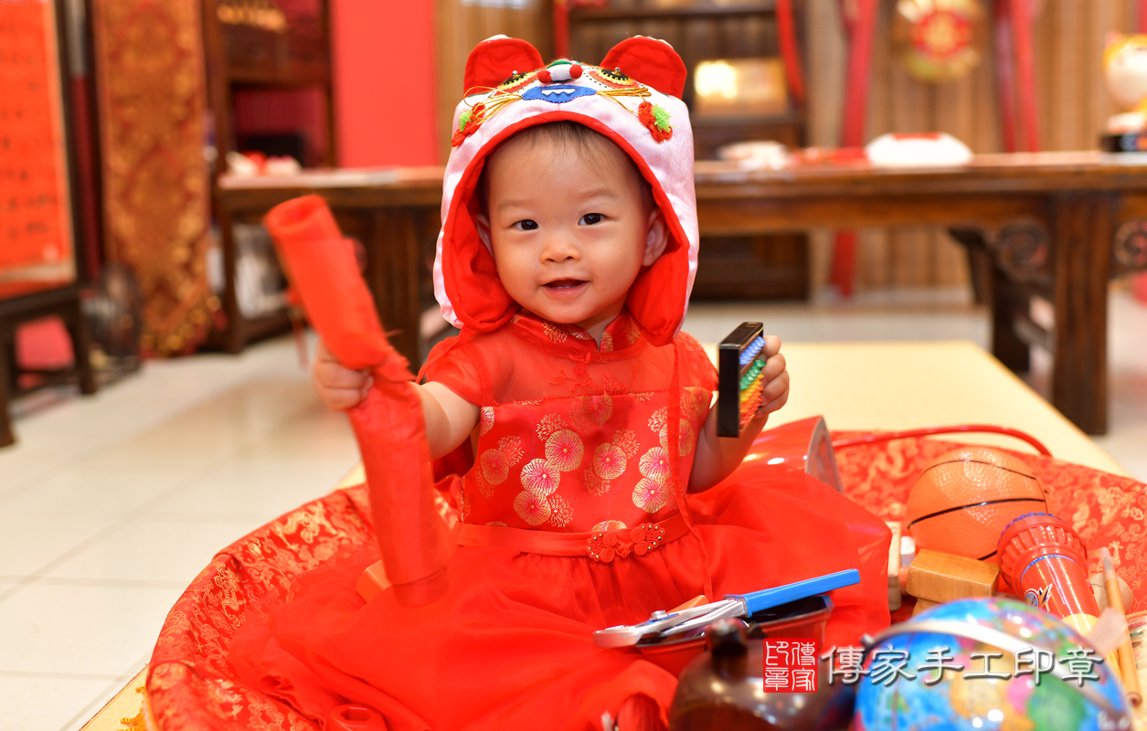高雄市鳳山區吳寶寶抓周推薦:傳家高雄店抓周度脺中國風會場,專業嬰兒古禮抓周流程儀式吉祥話、抓周道具物品24種、攝影拍照。爸媽寶貝三人穿古裝禮服「日式、中式、韓式。款式200套」抓周證書,DVD光碟。2020.10.25