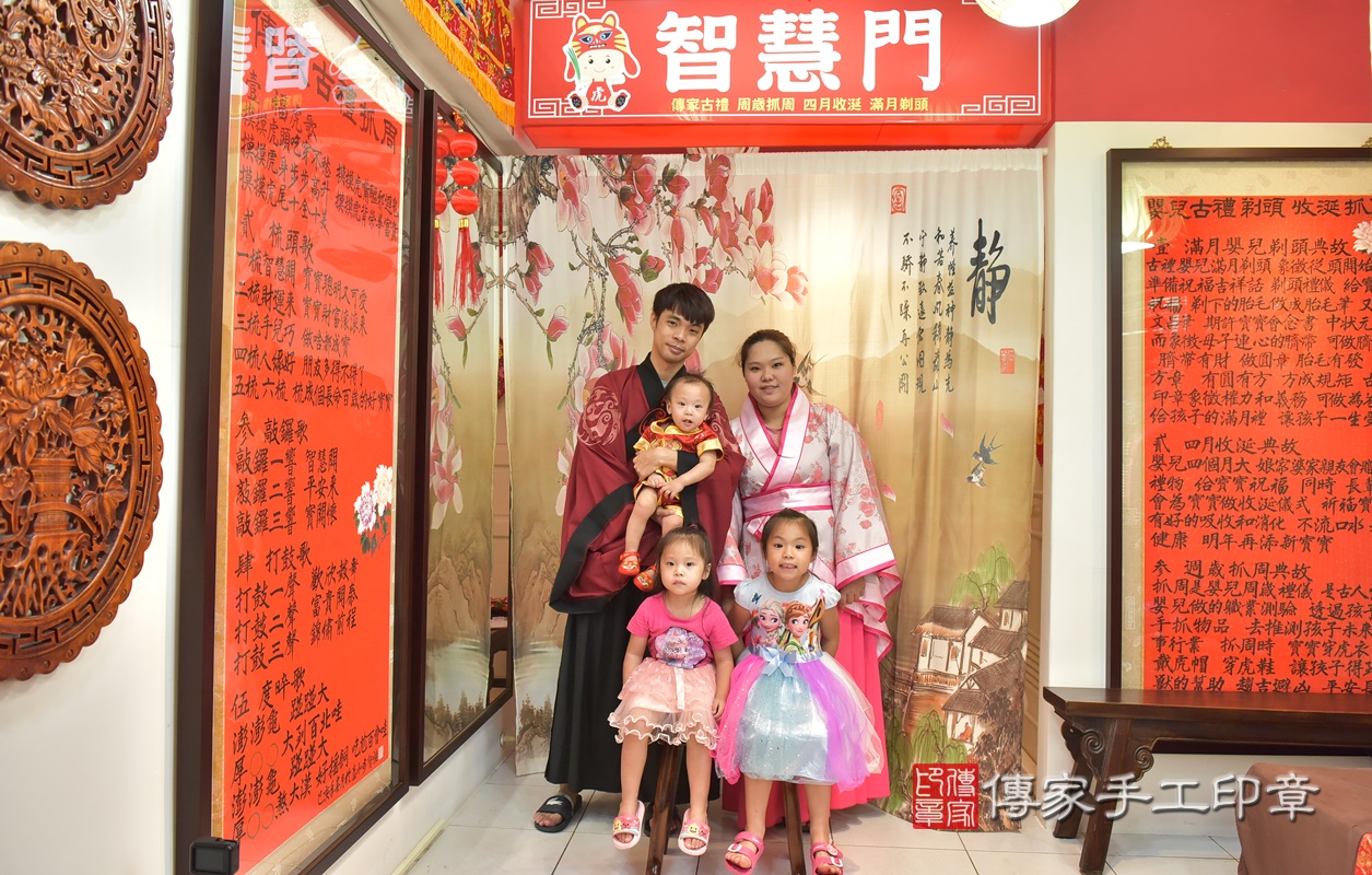 新竹市香山區孫寶寶抓周推薦:傳家新竹店抓周度脺中國風會場,嬰兒古禮抓周流程儀式吉祥話、抓周道具物品24種、拍照。抓周證書。2020.07.09