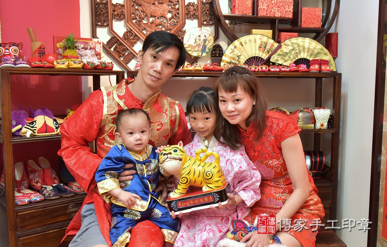 新竹市香山區李寶寶古禮抓周【穿抓周虎衣、帶抓周虎帽、穿抓周虎鞋】:滿週歲趨吉避凶的吉祥衣服穿戴。新竹店抓周。