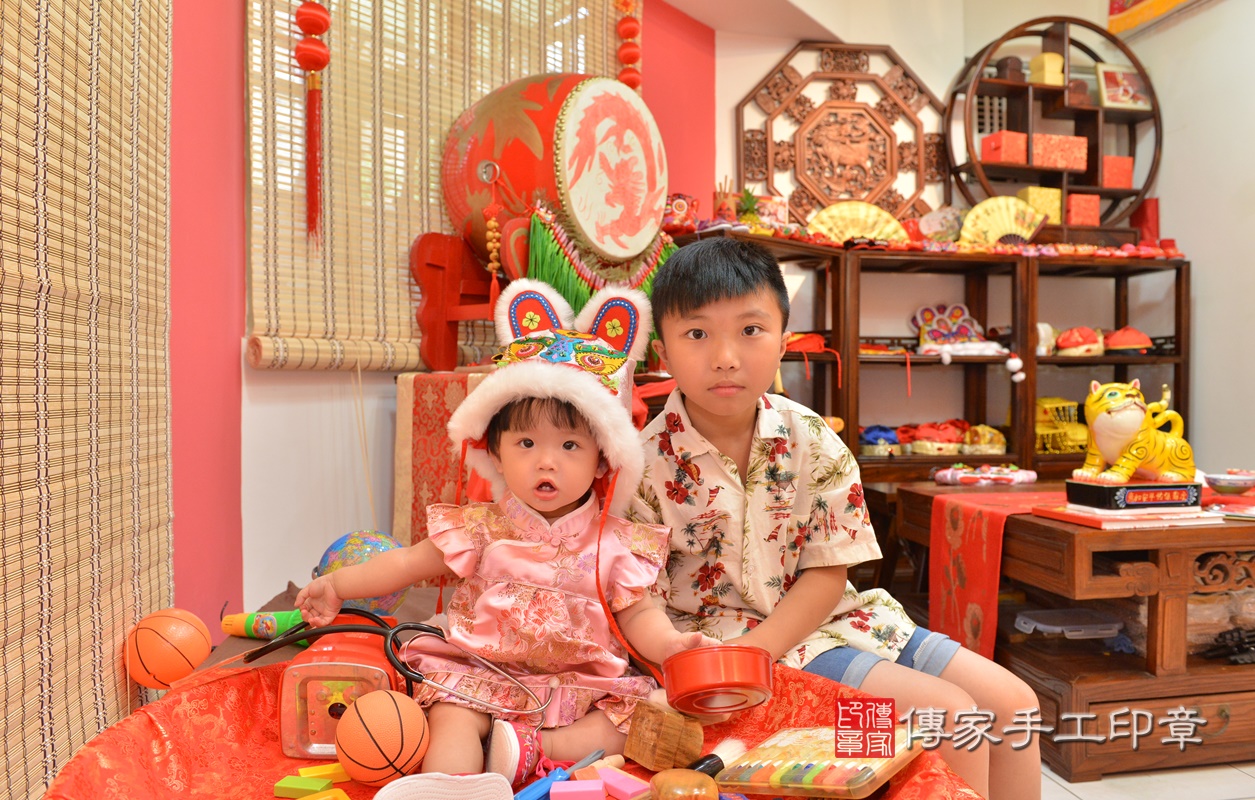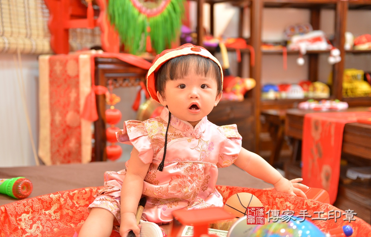 新竹市香山區廖寶寶抓周推薦:傳家新竹店抓周度脺中國風會場,嬰兒古禮抓周流程儀式吉祥話、抓周道具物品24種、拍照。抓周證書。2020.05.07