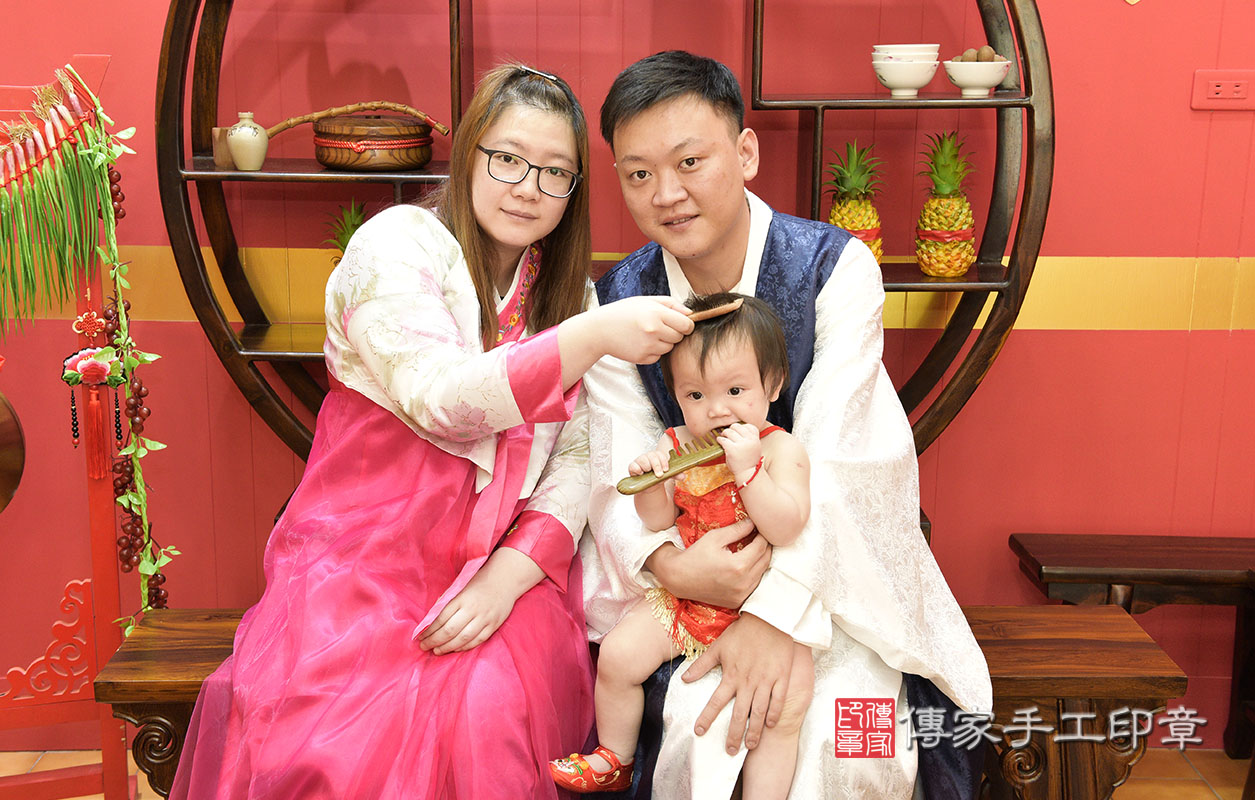 八德區粘寶寶抓周儀式【梳頭歌】朗誦祝福:保佑寶寶順利健康長大,好運旺旺來。桃園店抓周。