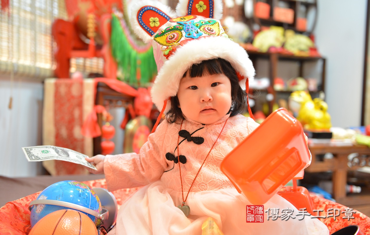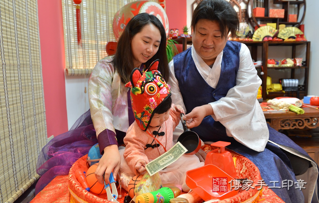 新竹市香山區鍾寶寶抓周推薦:傳家新竹店抓周度脺中國風會場,嬰兒古禮抓周流程儀式吉祥話、抓周道具物品24種、拍照。抓周證書。2020.03.04