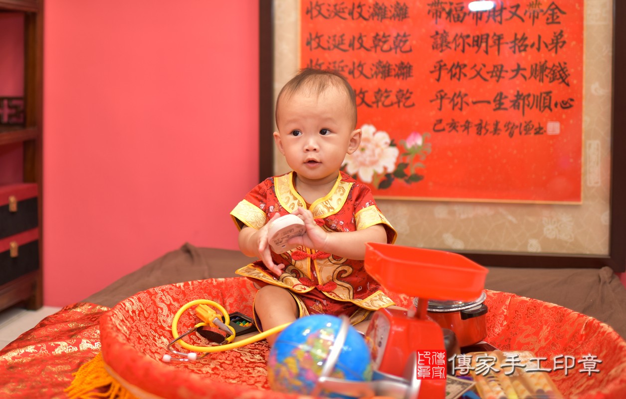 台中市北區陳寶寶抓周推薦:傳家台中店抓周度脺中國風會場,嬰兒古禮抓周流程儀式吉祥話、抓周道具物品24種、拍照。抓周證書。2020.08.03