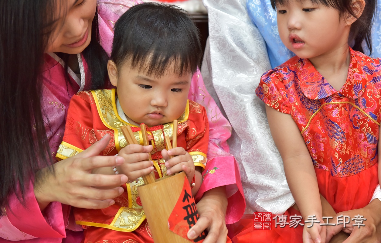 新竹市香山區蕭寶寶抓周推薦:傳家新竹店抓周度脺中國風會場,嬰兒古禮抓周流程儀式吉祥話、抓周道具物品24種、拍照。抓周證書。2020.07.01
