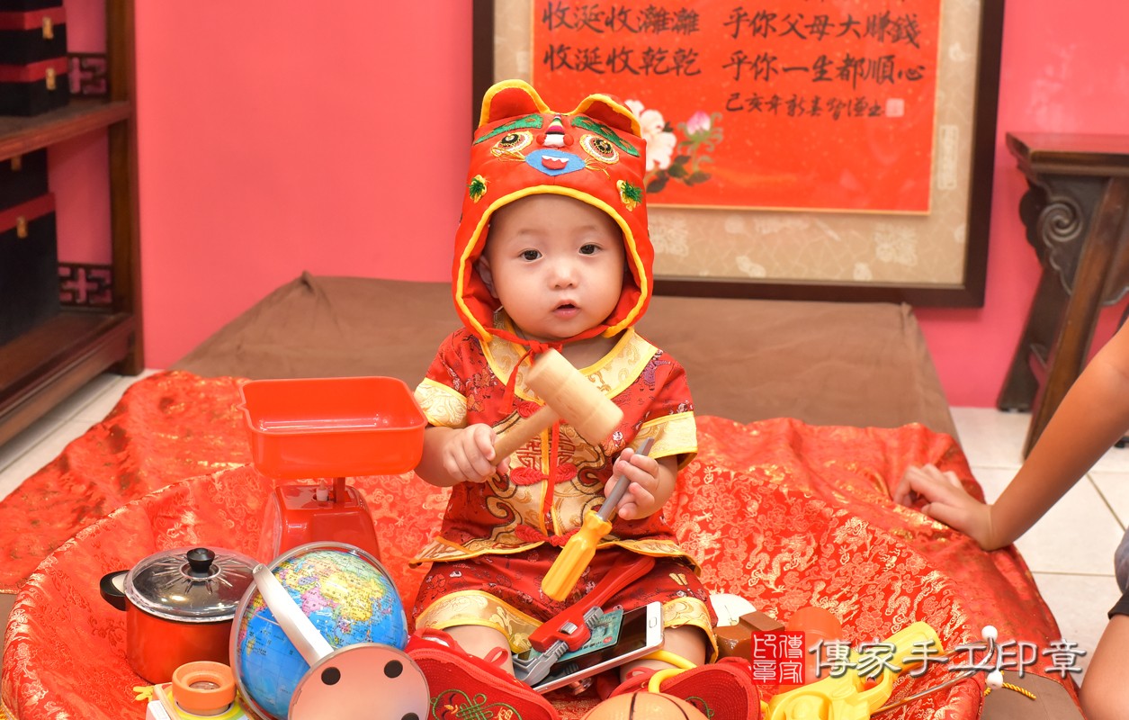 台中市北區楊寶寶抓周推薦:傳家台中店抓周度脺中國風會場,嬰兒古禮抓周流程儀式吉祥話、抓周道具物品24種、拍照。抓周證書。2020.09.19