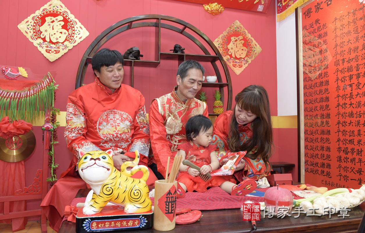 桃園市八德區朱寶寶抓周推薦:傳家桃園店抓周度脺中國風會場,嬰兒古禮抓周流程儀式吉祥話、抓周道具物品24種、拍照。抓周證書。2020.11.18