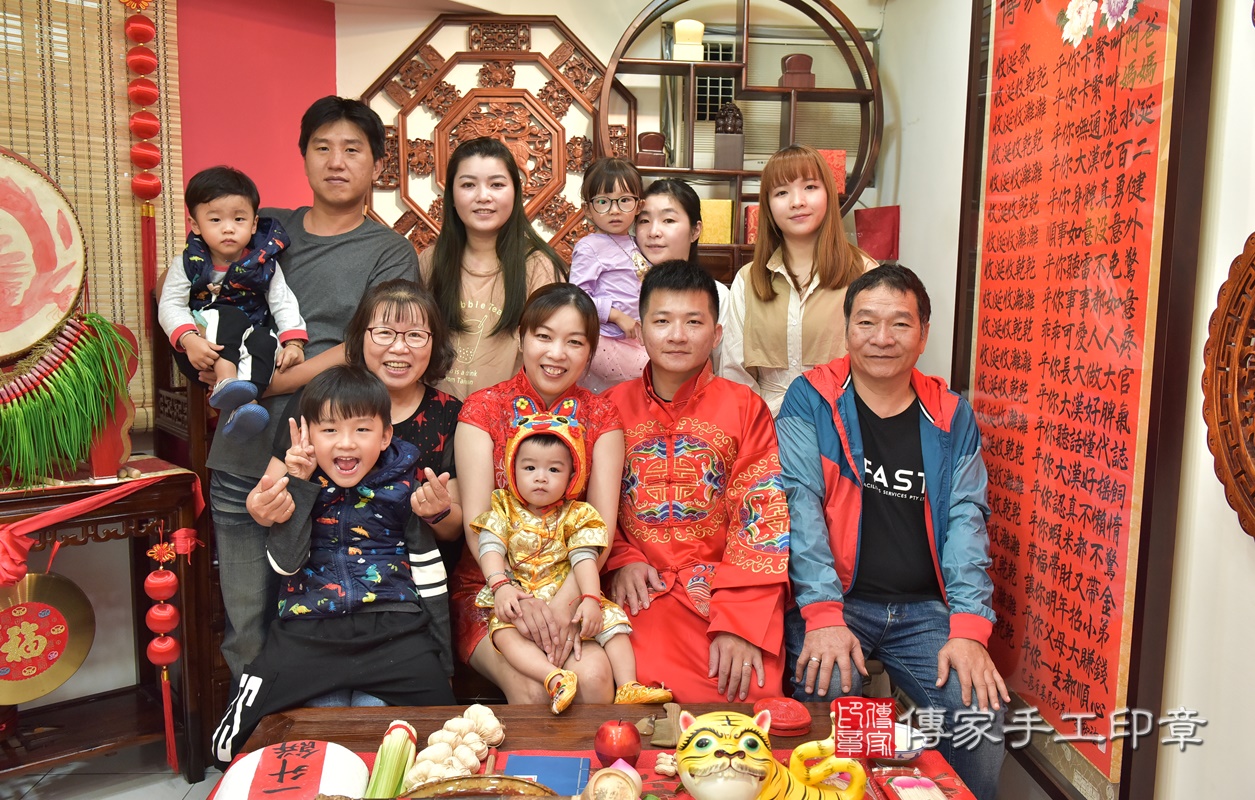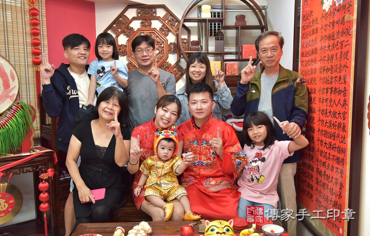 香山區鄧寶寶抓周全家福大合照。新竹店抓周。