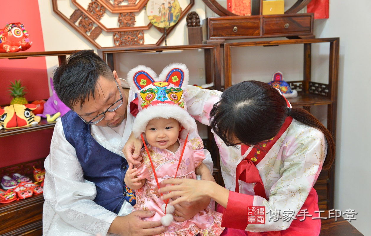 新竹市香山區江寶寶古禮抓周【穿抓周虎衣、帶抓周虎帽、穿抓周虎鞋】:滿週歲趨吉避凶的吉祥衣服穿戴。新竹店抓周。