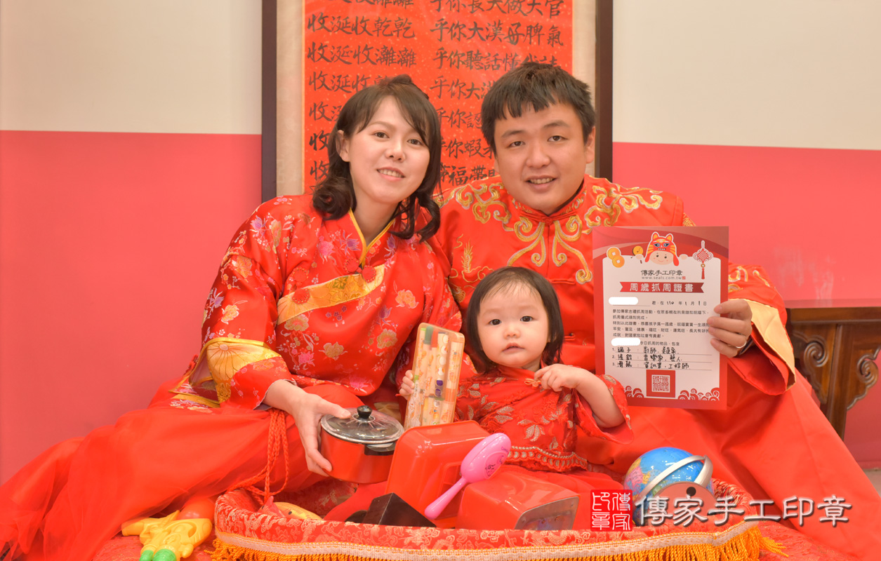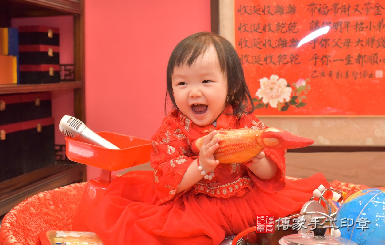 台中市北區薛寶寶抓周推薦:傳家台中店抓周度脺中國風會場,嬰兒古禮抓周流程儀式吉祥話、抓周道具物品24種、拍照。抓周證書。2021.01.01