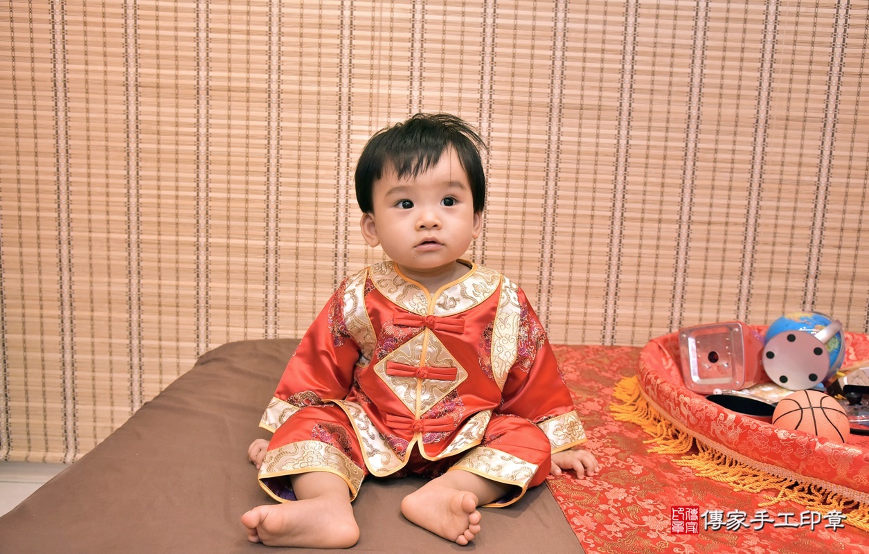 新竹市香山區許寶寶古禮抓周【穿抓周虎衣、帶抓周虎帽、穿抓周虎鞋】:滿週歲趨吉避凶的吉祥衣服穿戴。新竹店抓周。