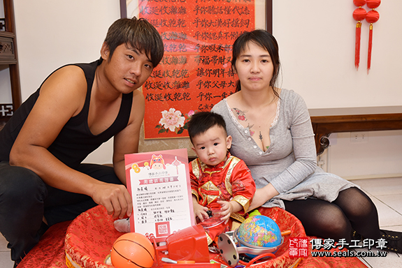 台中市北區謝寶寶抓周推薦:傳家台中店抓周度脺中國風會場,專業嬰兒古禮抓周流程儀式吉祥話、抓周道具物品24種、攝影拍照。爸媽寶貝三人免費穿古裝禮服「日式、中式、韓式。款式200套」抓周證書,DVD光碟。2019.09.22