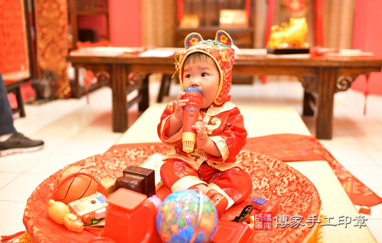 高雄市鳳山區楊寶寶抓周推薦:傳家高雄店抓周度脺中國風會場,嬰兒古禮抓周流程儀式吉祥話、抓周道具物品24種、拍照。抓周證書。2021.01.10