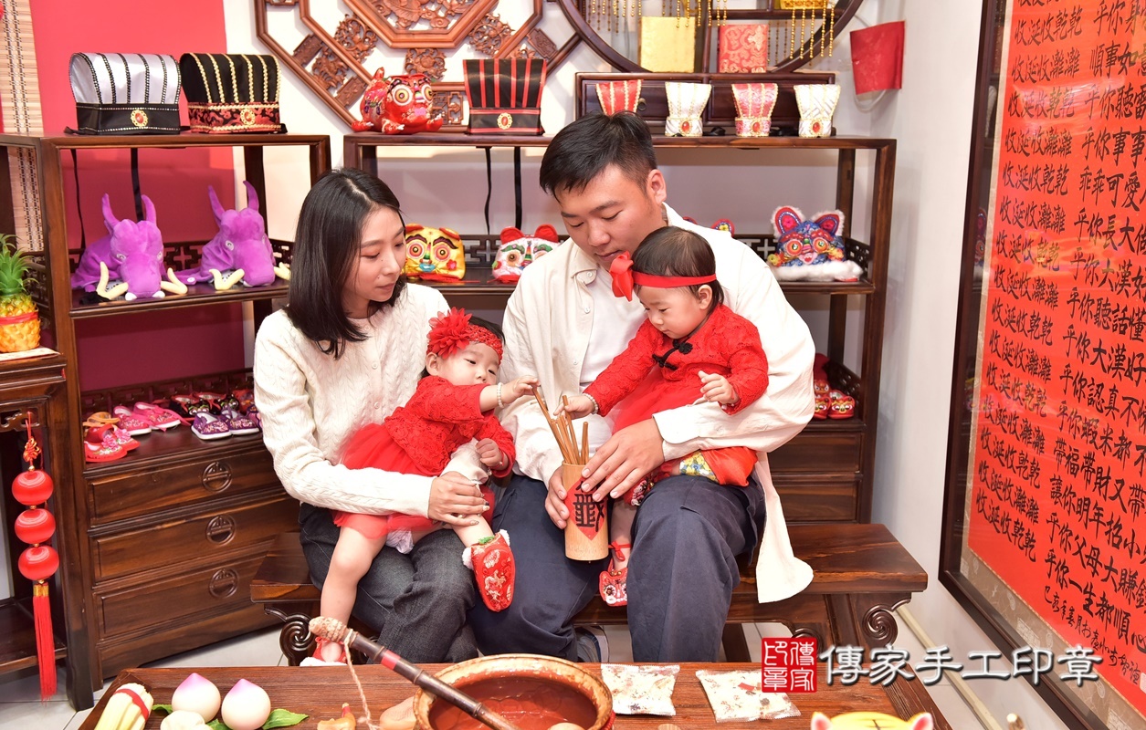 新竹市香山區黃寶寶抓周推薦:傳家新竹店抓周度脺中國風會場,嬰兒古禮抓周流程儀式吉祥話、抓周道具物品24種、拍照。抓周證書。2021.02.07