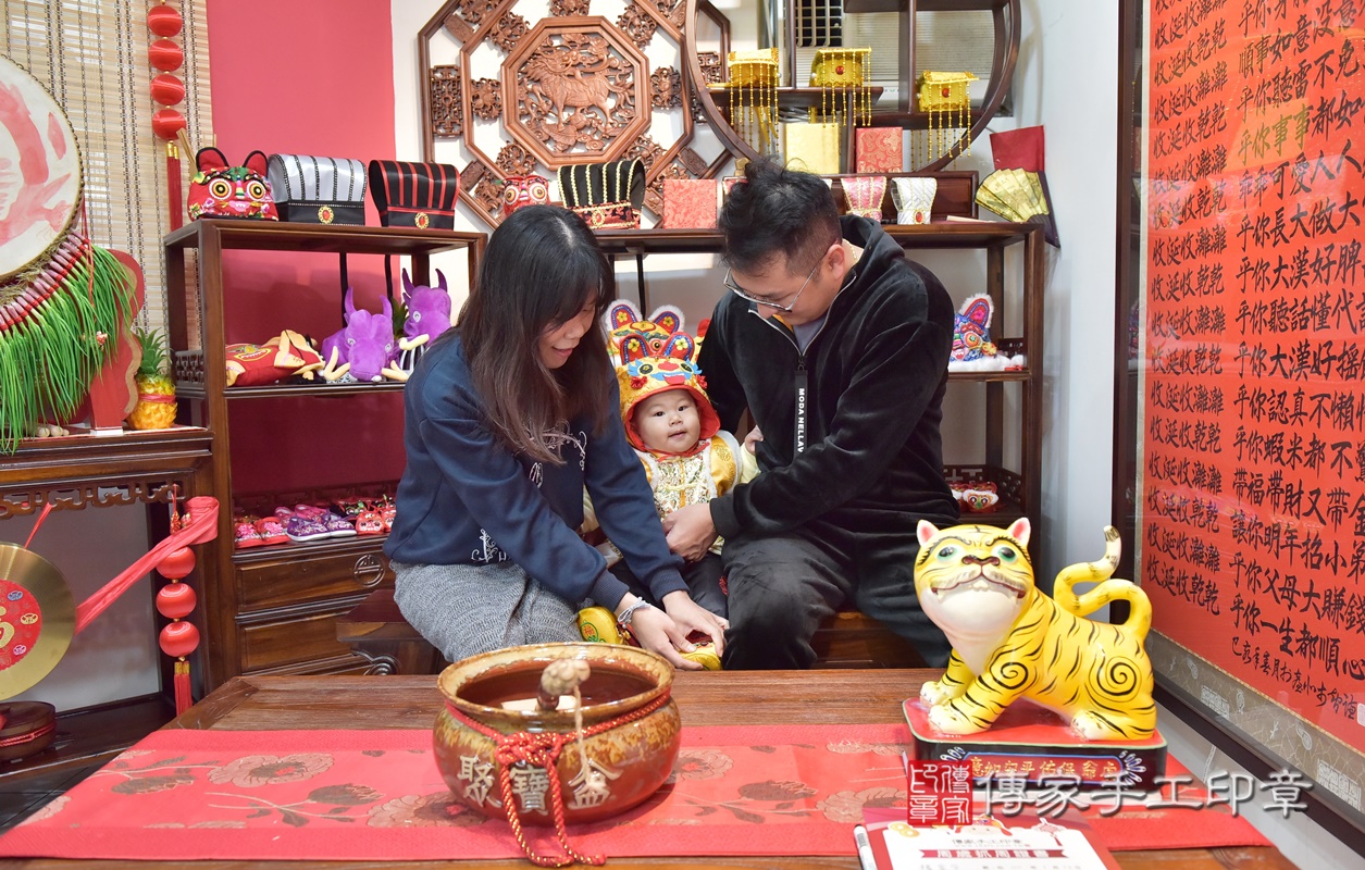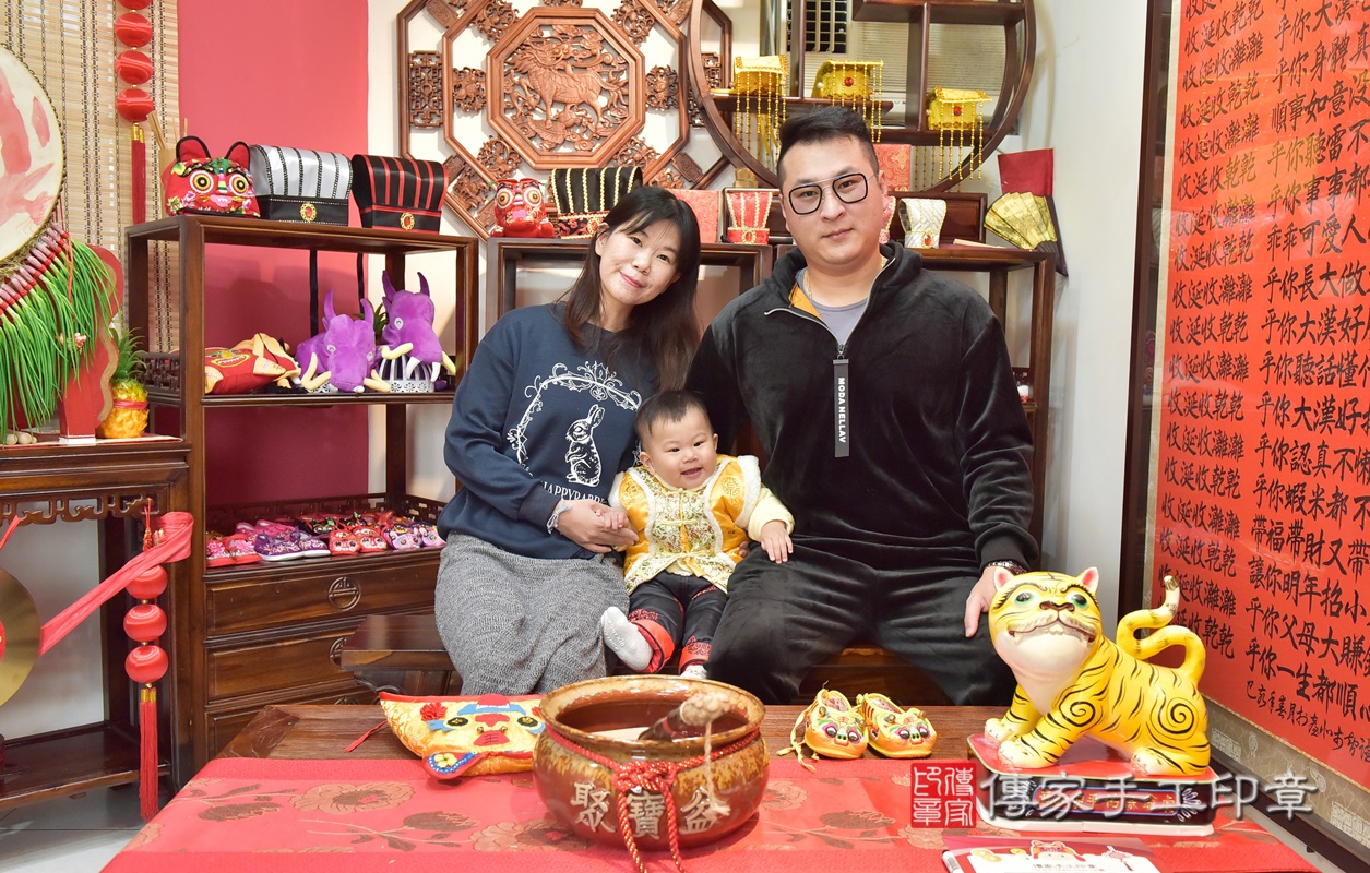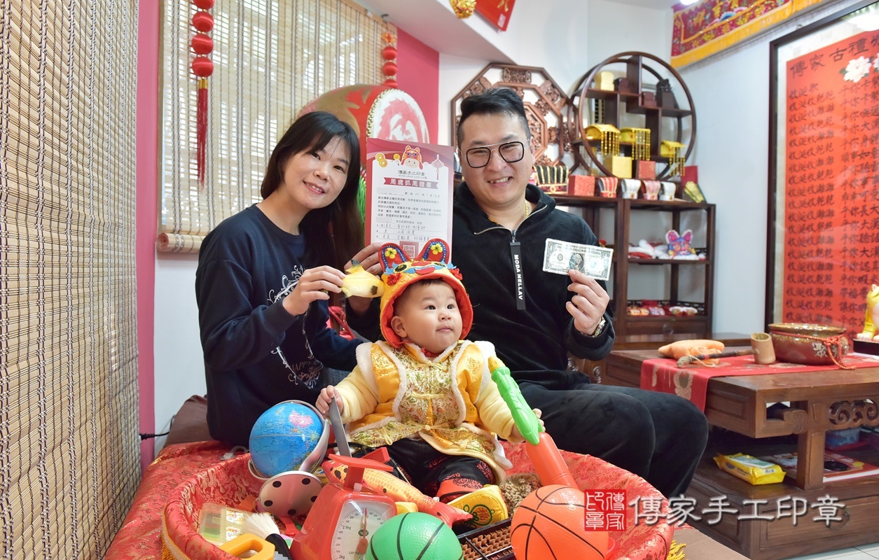 新竹市香山區楊寶寶抓周推薦:傳家新竹店抓周度脺中國風會場,嬰兒古禮抓周流程儀式吉祥話、抓周道具物品24種、拍照。抓周證書。2021.01.12