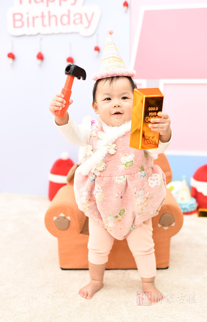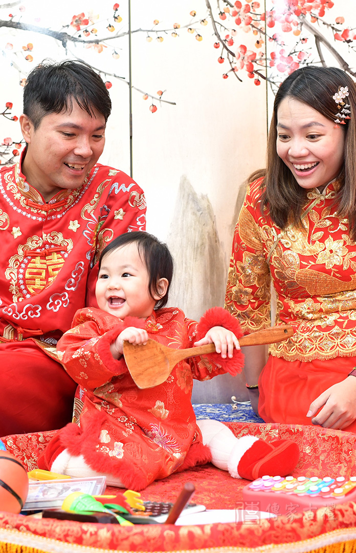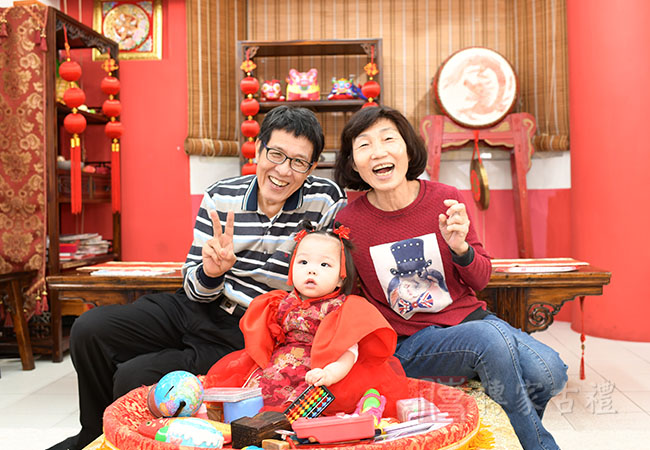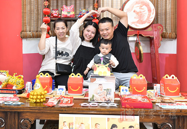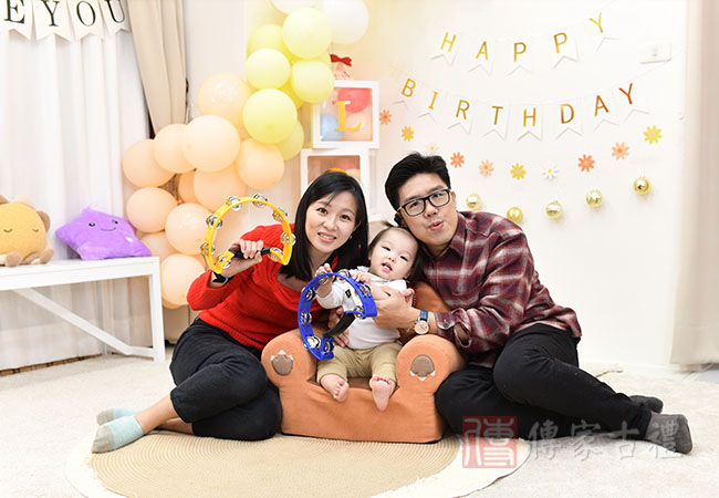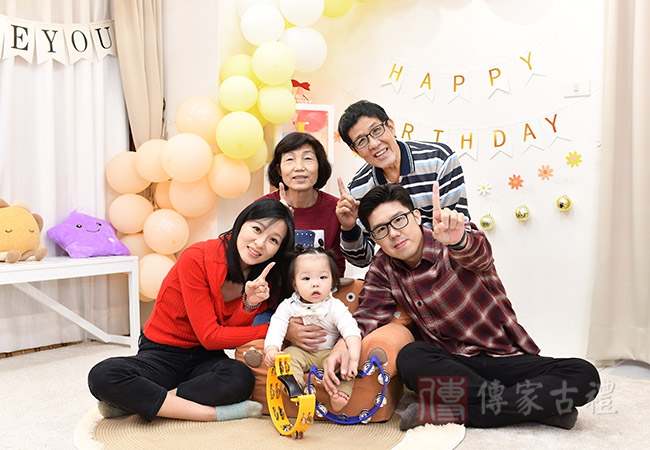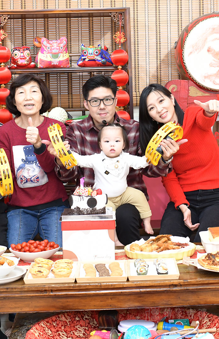 抓周生日派對【簡易方案】,為父母【自帶蛋糕】方案,與抓周活動一起併行,多了生日蛋糕慶生過程,增添抓周與慶生派對,整體歡樂過程記錄。